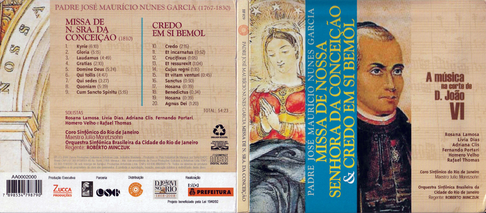 - Missa Nossa Senhora da Conceição & Credo em Si Bemol, do Padre José Maurício Nunes Garcia, com o Coro Sinfônico do Rio de Janeiro e Orquestra Sinfônica Brasileira, sob regência de Roberto Minczuk e cantoras e cantores convidados;
