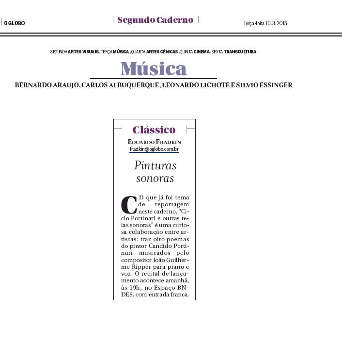 Composições de João Guilherme Ripper, com Gabriela Pace, Luisa Francesconi e Priscila Bomfim