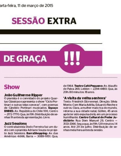 por de João Guilherme Ripper, com Gabriela Pace (voz), Priscilla Bomfim (piano)
