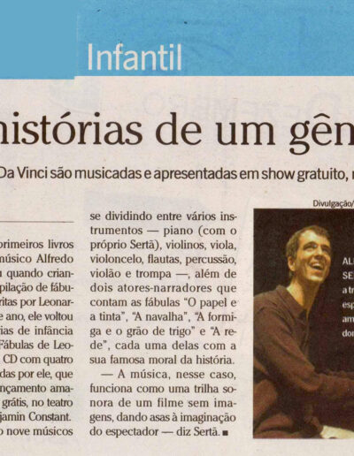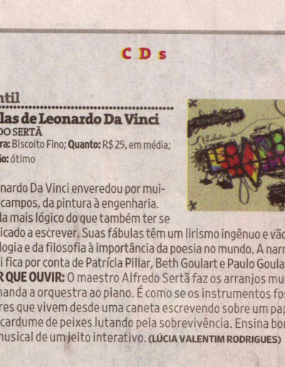 Harpas Gravadas nos Estúdios da Biscoito Fino por Fernando Prado • Narrações – Paulo Goulart gravadas no estúdio G-Tec – SP • Fábula “O Papel e a Tinta”