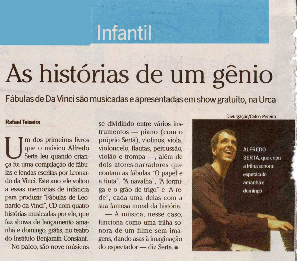 Este projeto se baseou em quatro dessas histórias para criar um CD, com inspiração no formato da obra clássica O Pedro e o Lobo, de Serguei Prokofiev. Cada história foi narrada por um artista e musicadas por Alfredo Sertã, idealizador do projeto. As histórias que compõe o disco são: