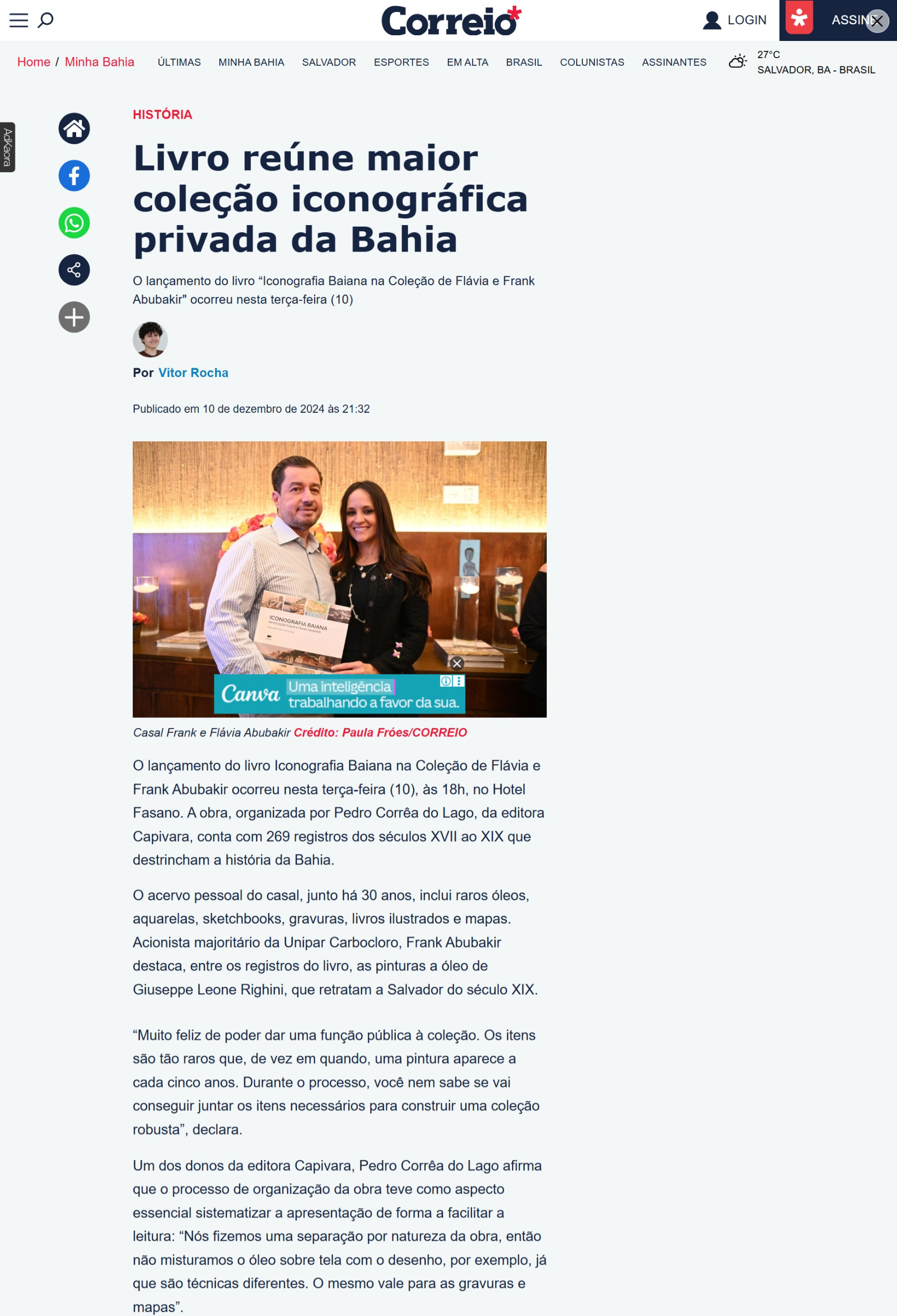 O Lançamento ocorreu em 10 de dezembro de 2024 em um Hotel em Salvador, aberto ao público. O local era dotado de condições de acessibilidade e, na ocasião, houve palestra gratuita com o editor Pedro Correa do Lago.