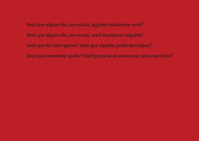 Será que algum dia, na escola, alguém machucou você? Será que algum dia, na escola, você machucou alguém? Será que foi sem querer? Será que alguém pediu desculpas? Será que conversar ajuda? Você gostaria de conversar com este livro?
