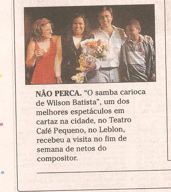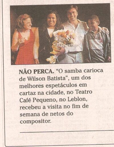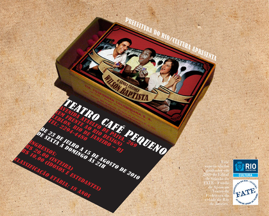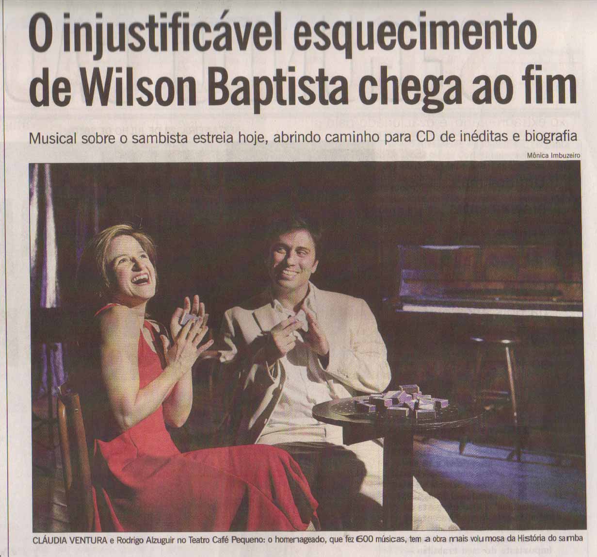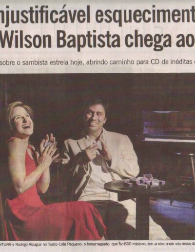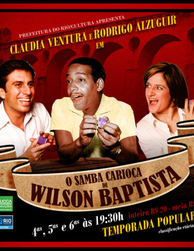 O samba carioca de Wilson Baptista é um espetáculo musical sobre a vida e a obra de Wilson Baptista (1913-1968), que reúne teatro e música em homenagem ao “maior sambista brasileiro”, segundo Paulinho da Viola. O texto, baseado em profunda pesquisa sobre o compositor feita por Rodrigo Alzuguir.